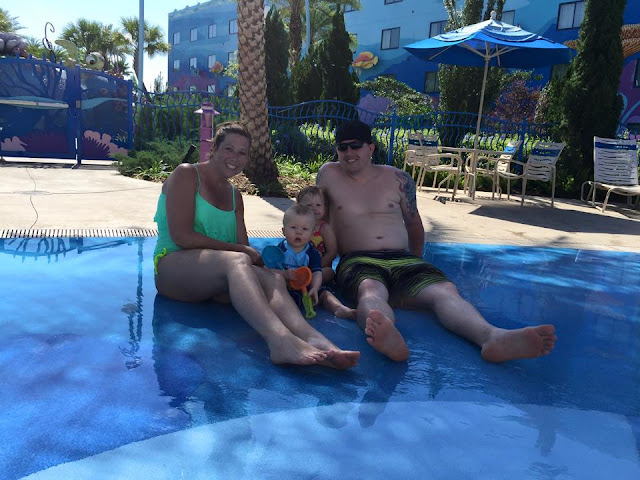 After our BIG day yesterday, we all needed a relaxing day! We ate at the hotel cafeteria. We played at the pool. The kids napped and Mommy and Daddy got to go to the pool alone and have a few adult beverages and RELAX! Then, we explored the hotel grounds and ate dinner at the Pop Century hotel which was connected to our hotel. Myla sat and ate with a few little girls that were there and then one decided to play school. Myla was a student in her class, but needless to say Myla didn't like not being the one in charge. HAHA! After dinner, we explored the property some more, took tons of pics, shopped in the store, and played in the arcade. We headed back to the room and I'm pretty sure we all headed to bed to get ready for our next big day!